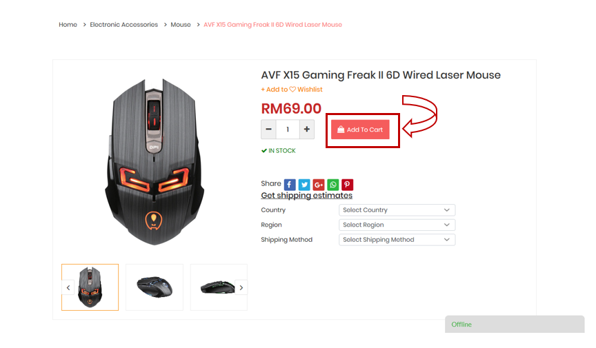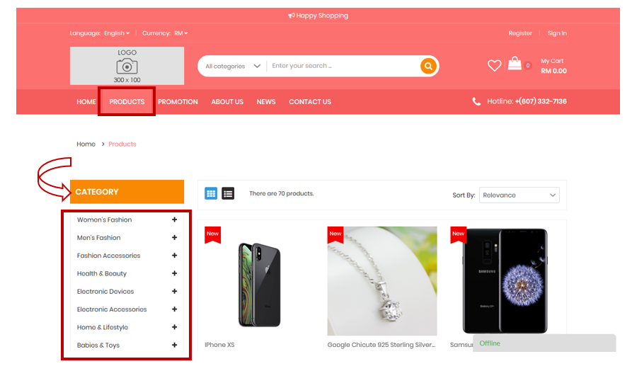 1. First, choose the product you want to buy by clicking the "PRODUCT" menu to browse all products in the store. You can view Product Category on the left. You can also use the Search Box above to help you see what you are looking for