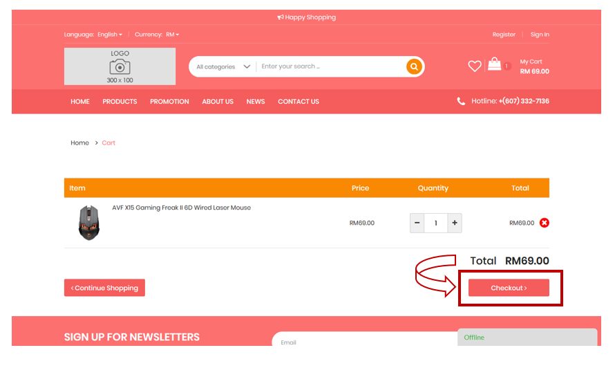 3. Next, the summary page shown to view your order for verification, make sure the item and price are correct. You can choose either "Continue Shopping" to browse other products or "Check Out" to make a payment.