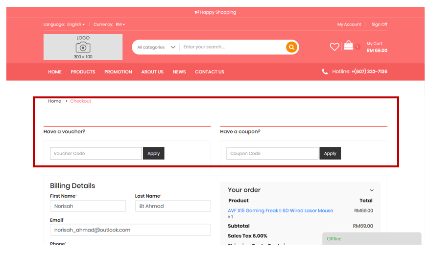 5. Next is your final step. If you receive any Voucher or Coupon Code for a discount price, please enter the code in the box given.